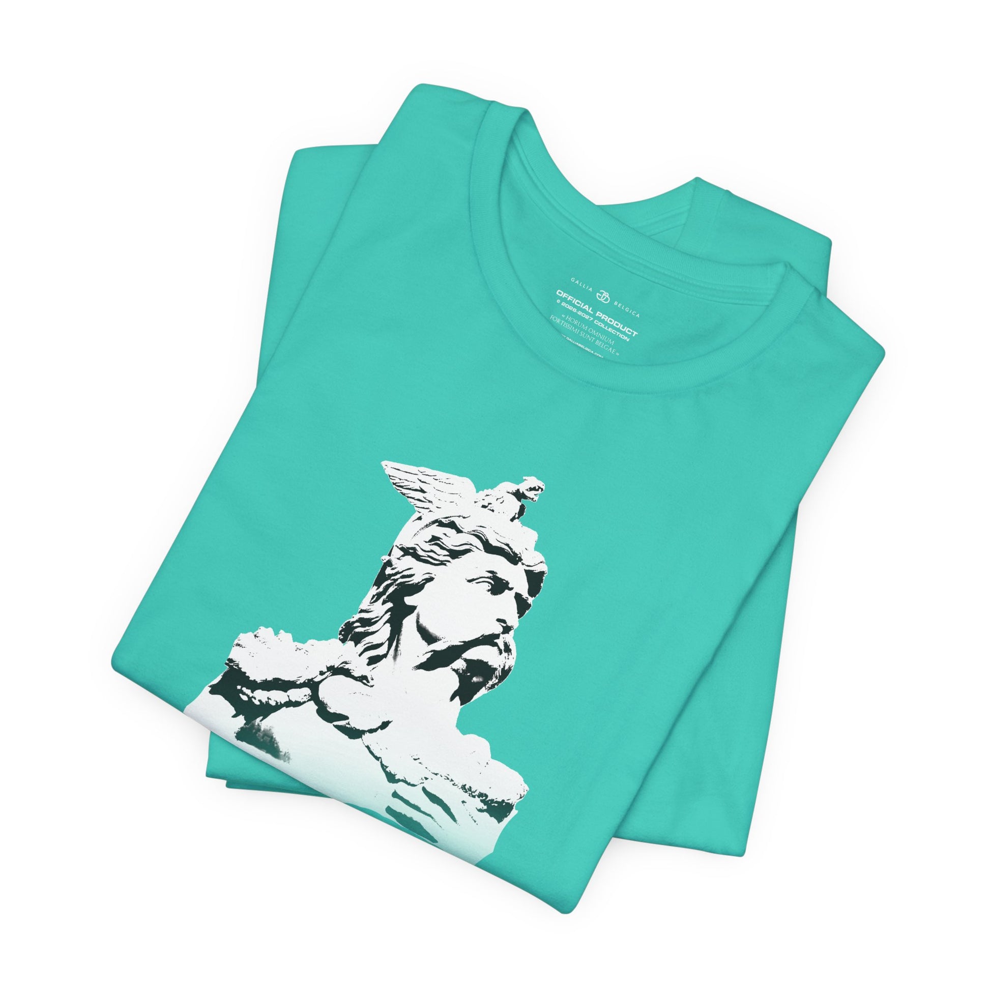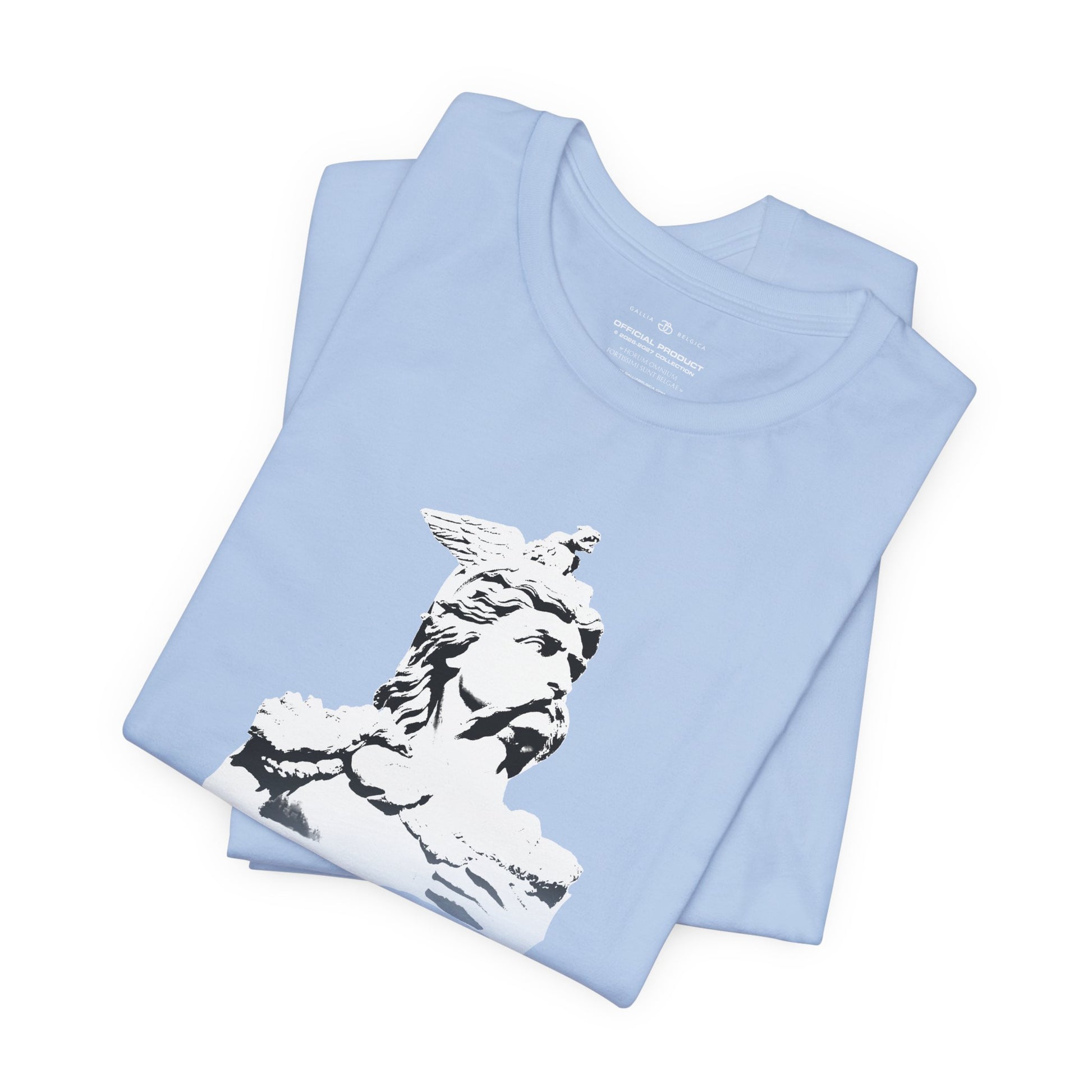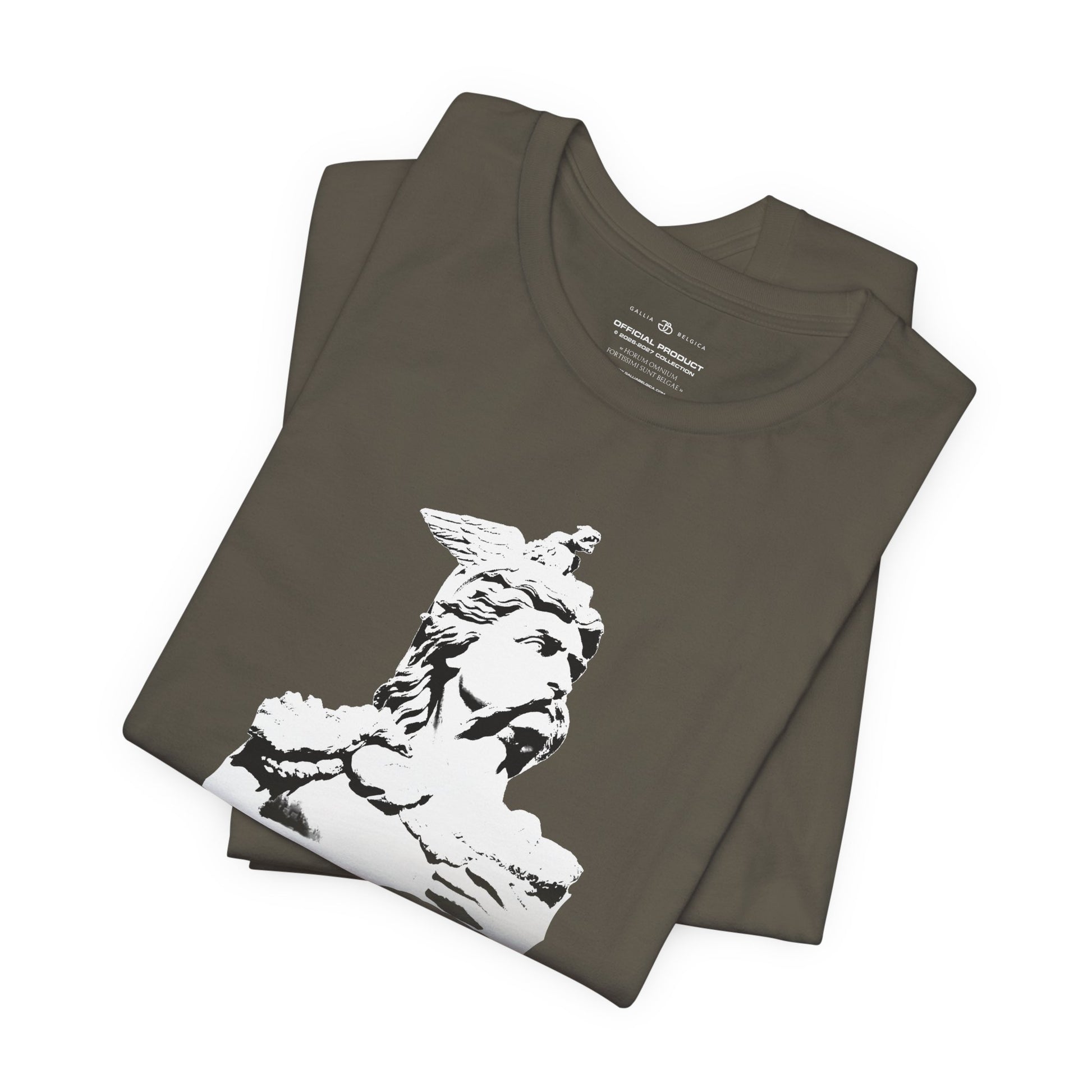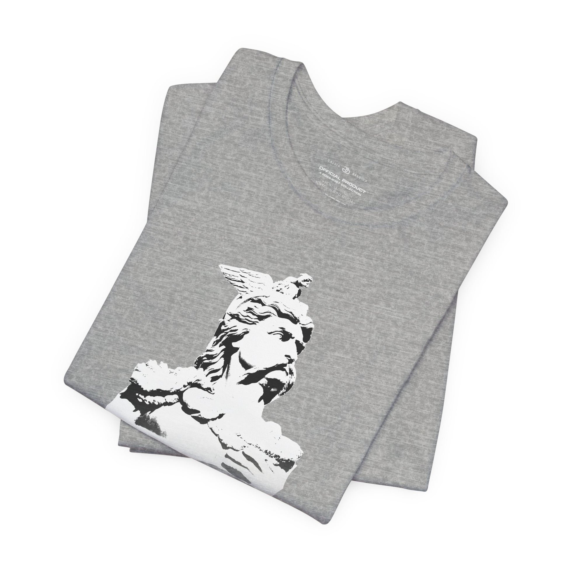 A light and comfortable t-shirt inspired by the legendary, Ambiorix. Designed for those who wish to wear his strength and courage every day. The soft, breathable quality ensures all-day comfort. With elasticated rib collar, side seams and double-needle stitching on sleeves and hem. Chose between white, charcoal, black or blue navy and step into the courage of a warrior, wherever life takes you. With a Belgian flag on the