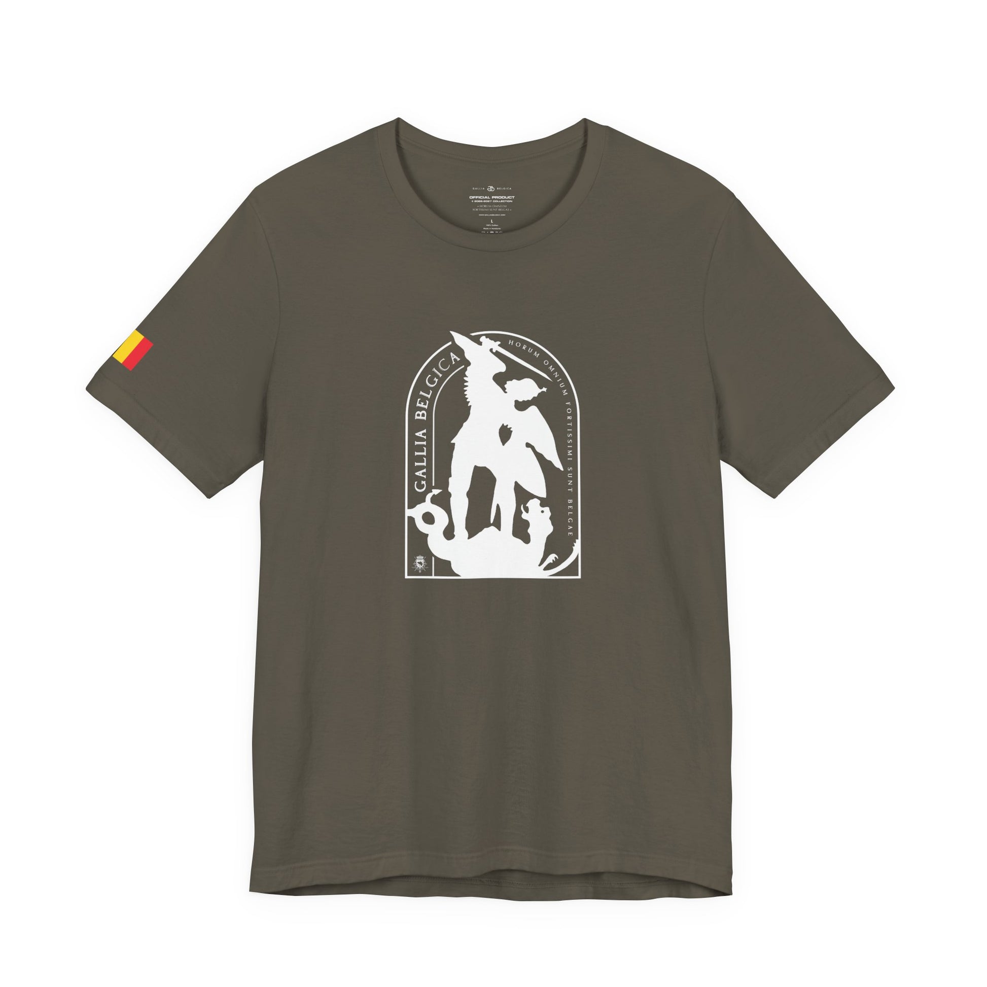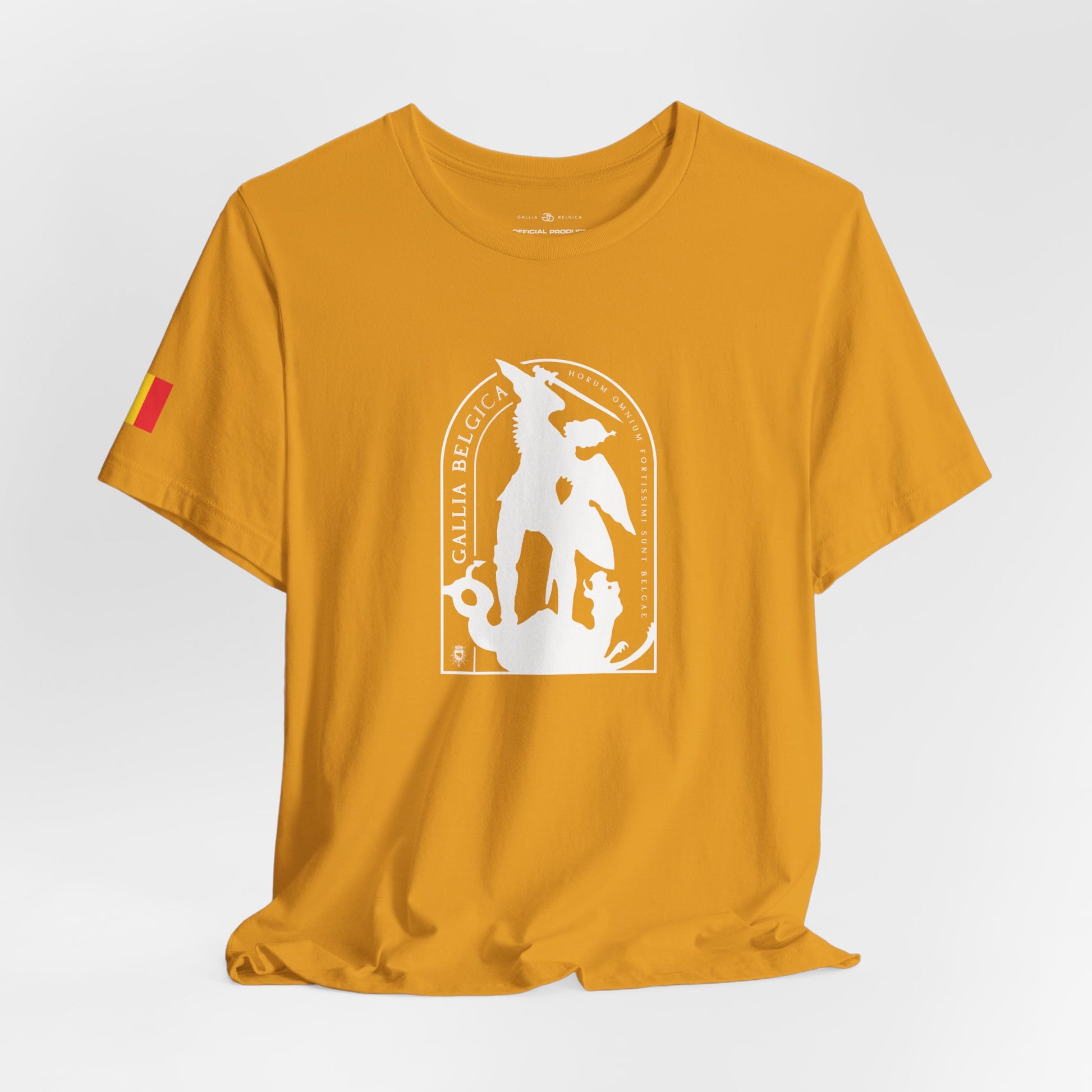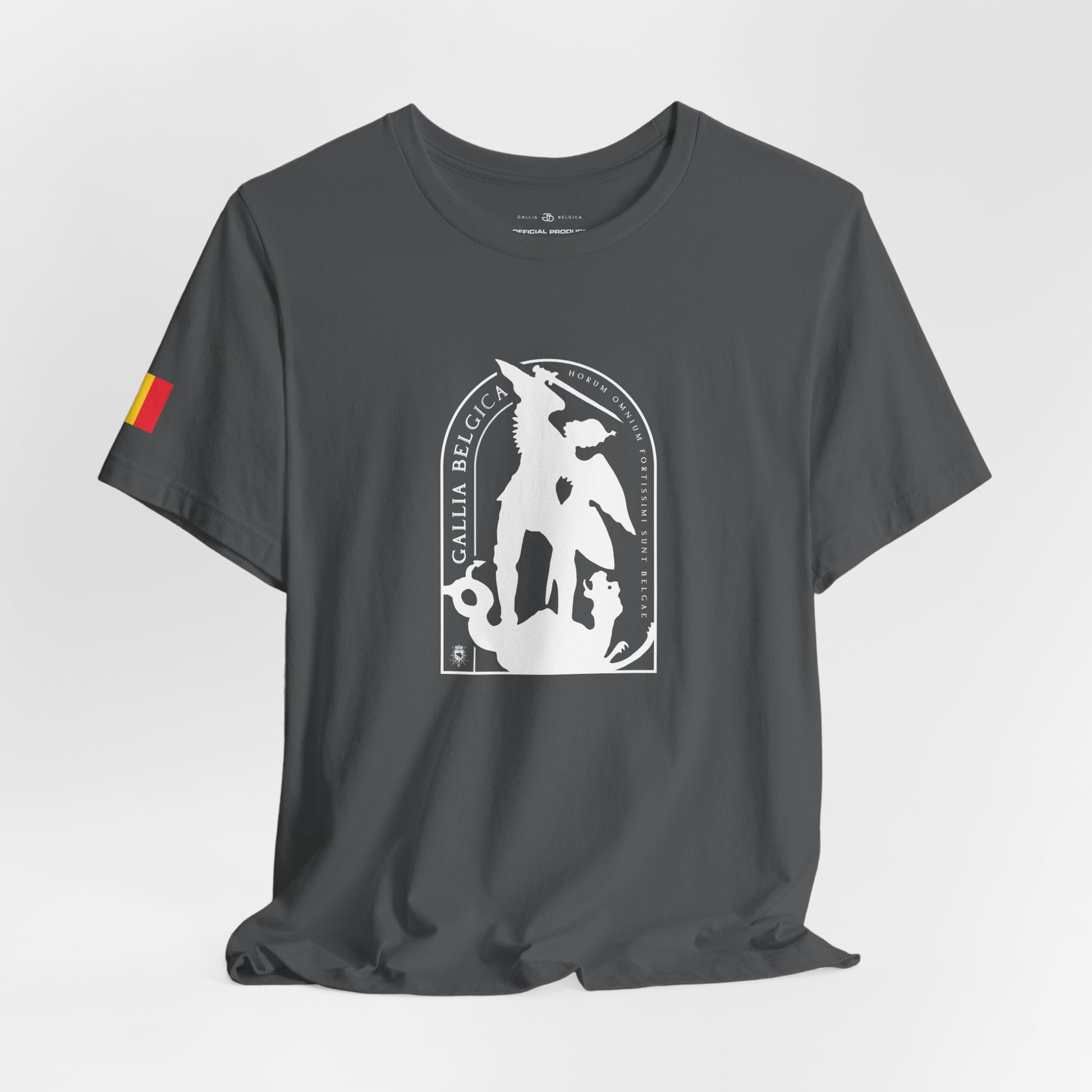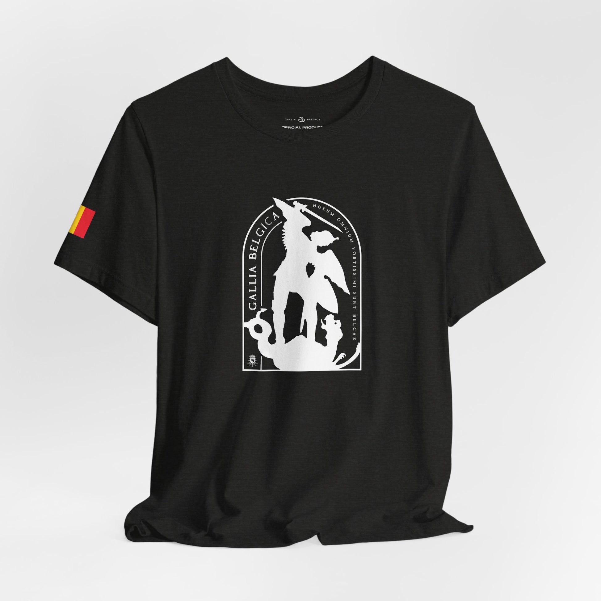 Defend the values of justice and strength with this iconic T-shirt. St-Michael, protector of Brussels, symbolizes the triumph of good over evil. He stand for guard over our city. Wear the badge of justice and strenght. It features a thin elasticated rib collar, side seams and double-needle stitching on sleeves and hem.