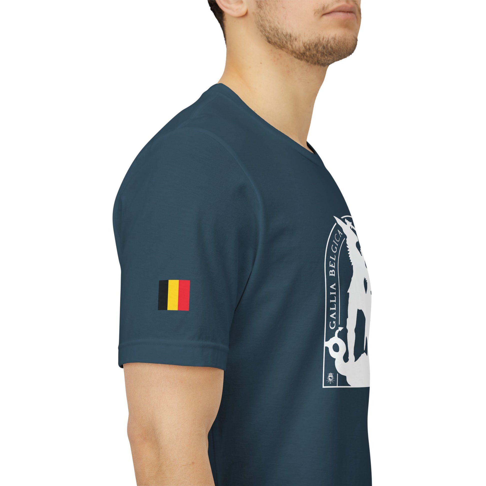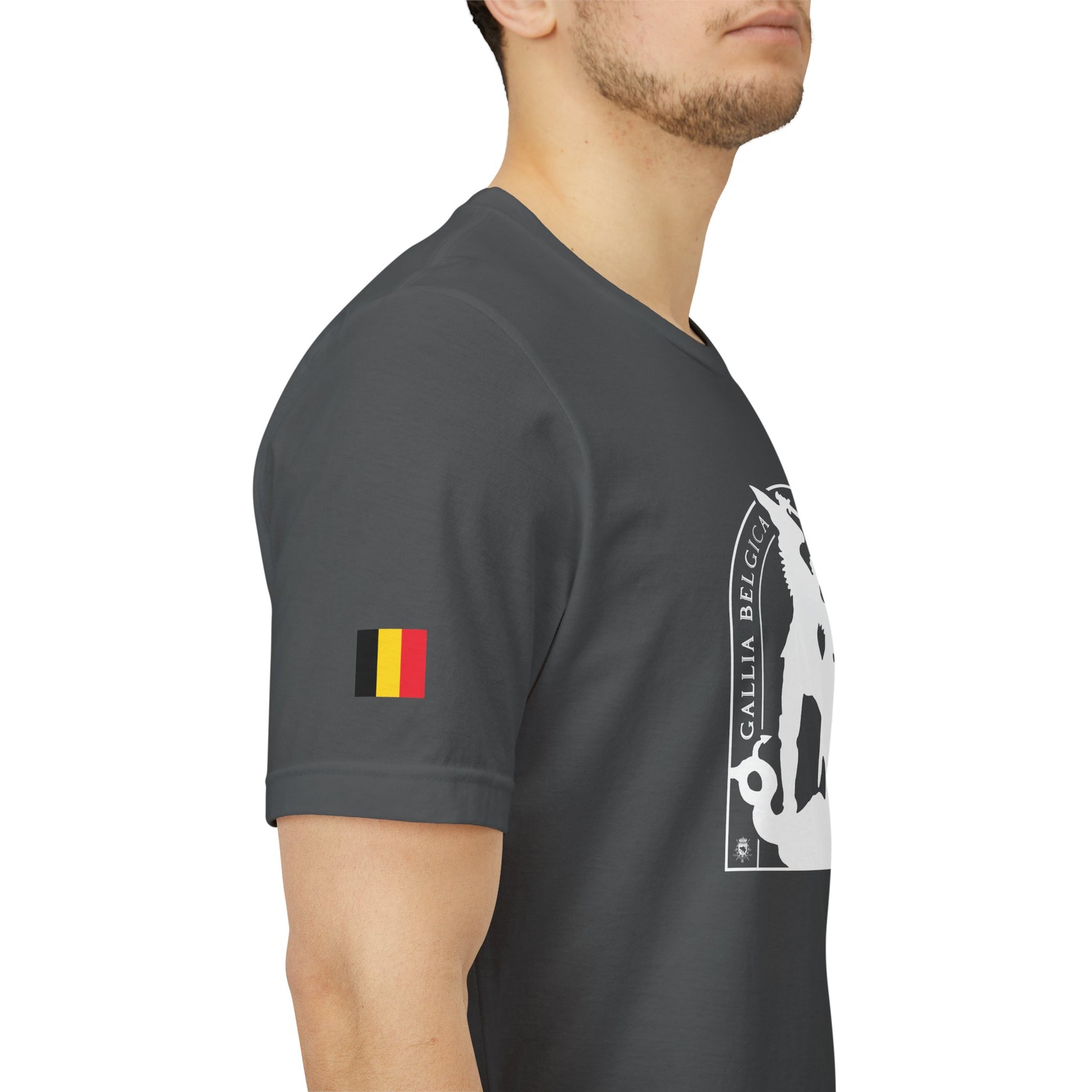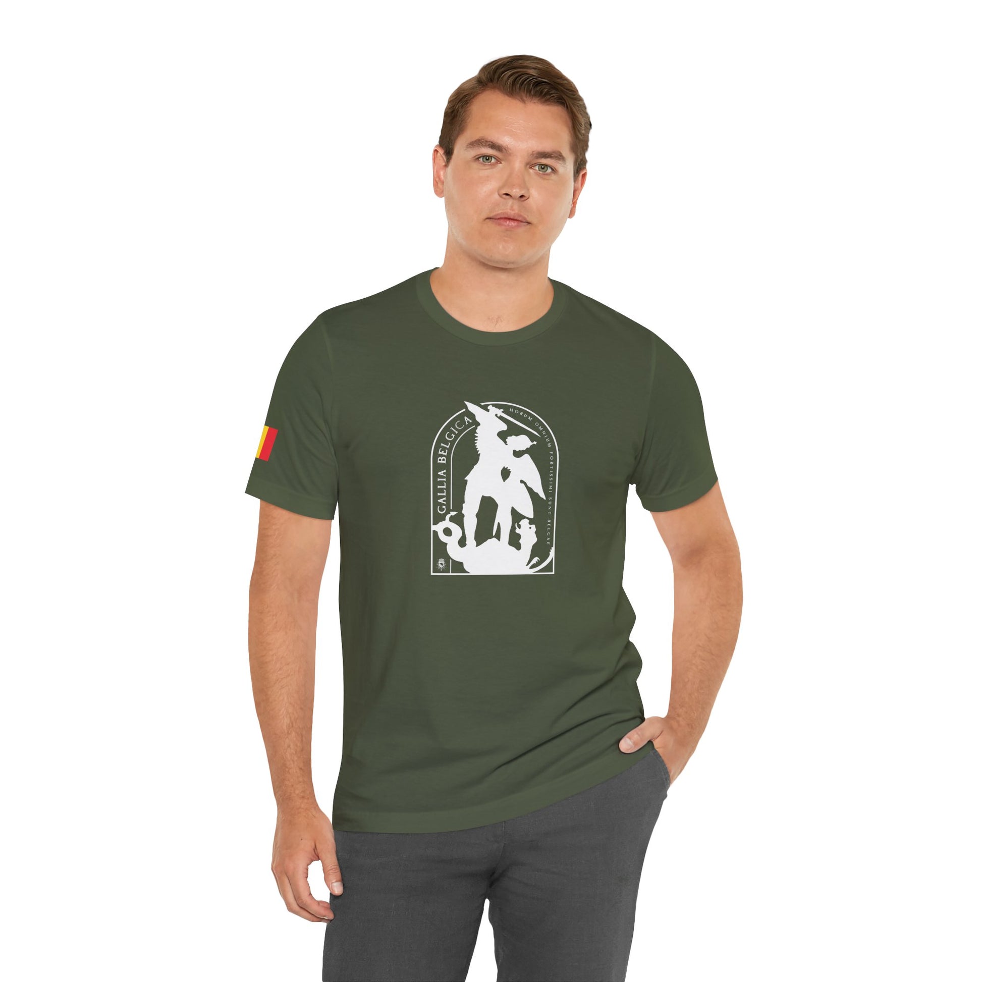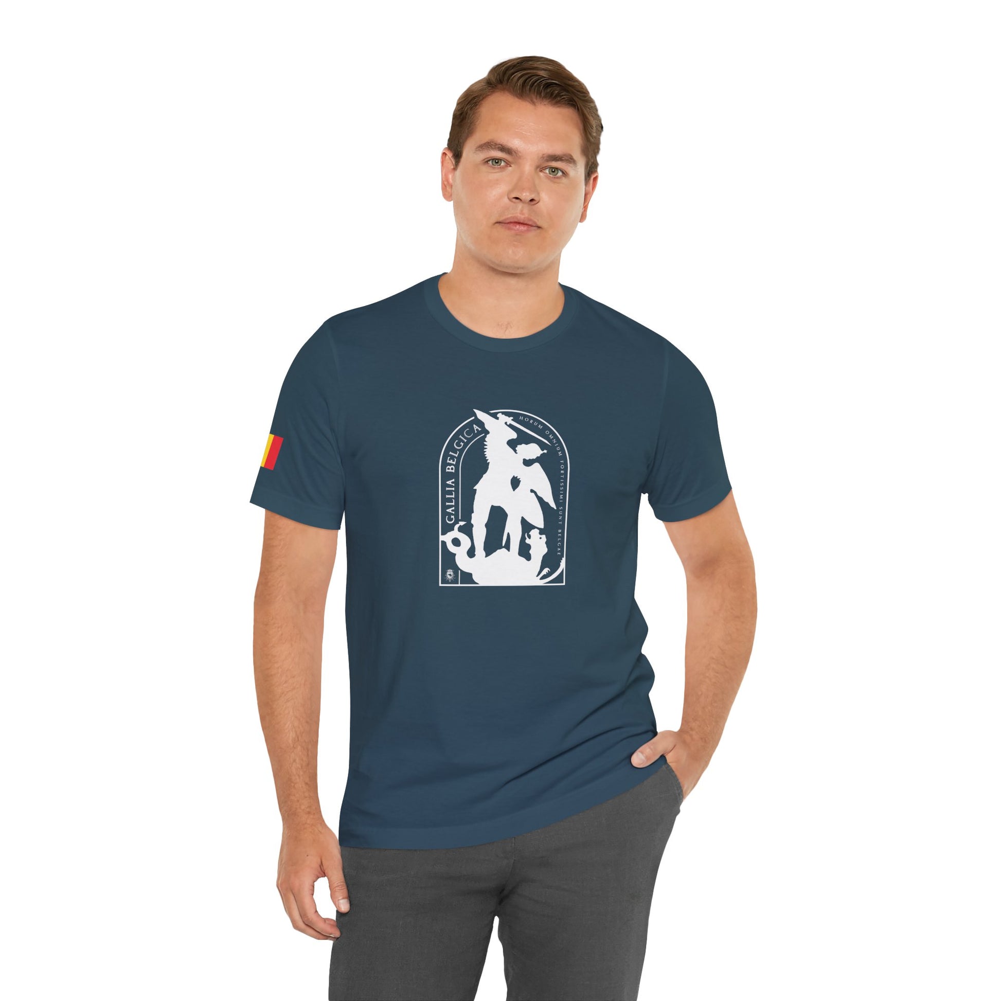 Defend the values of justice and strength with this iconic T-shirt. St-Michael, protector of Brussels, symbolizes the triumph of good over evil. He stand for guard over our city. Wear the badge of justice and strenght. It features a thin elasticated rib collar, side seams and double-needle stitching on sleeves and hem.