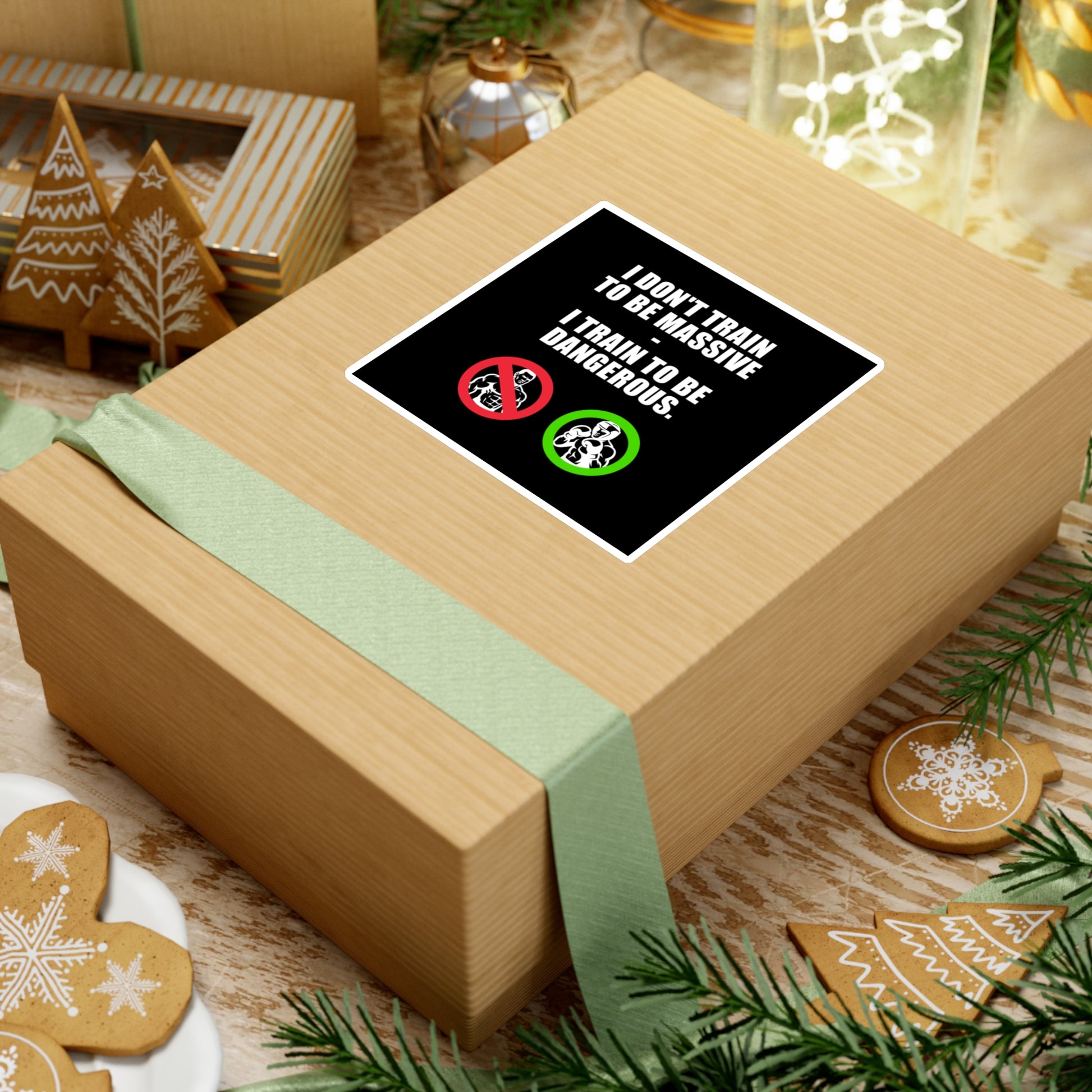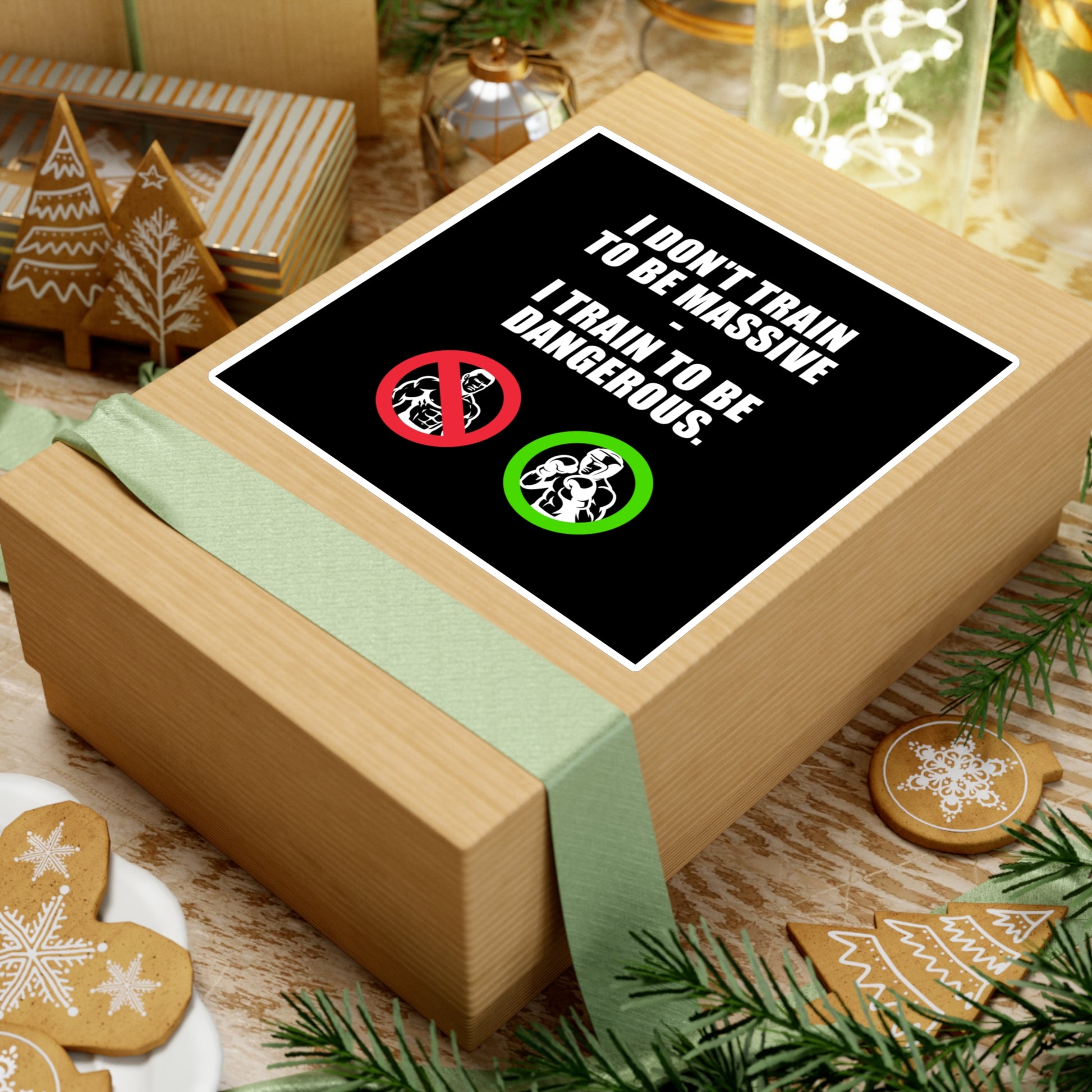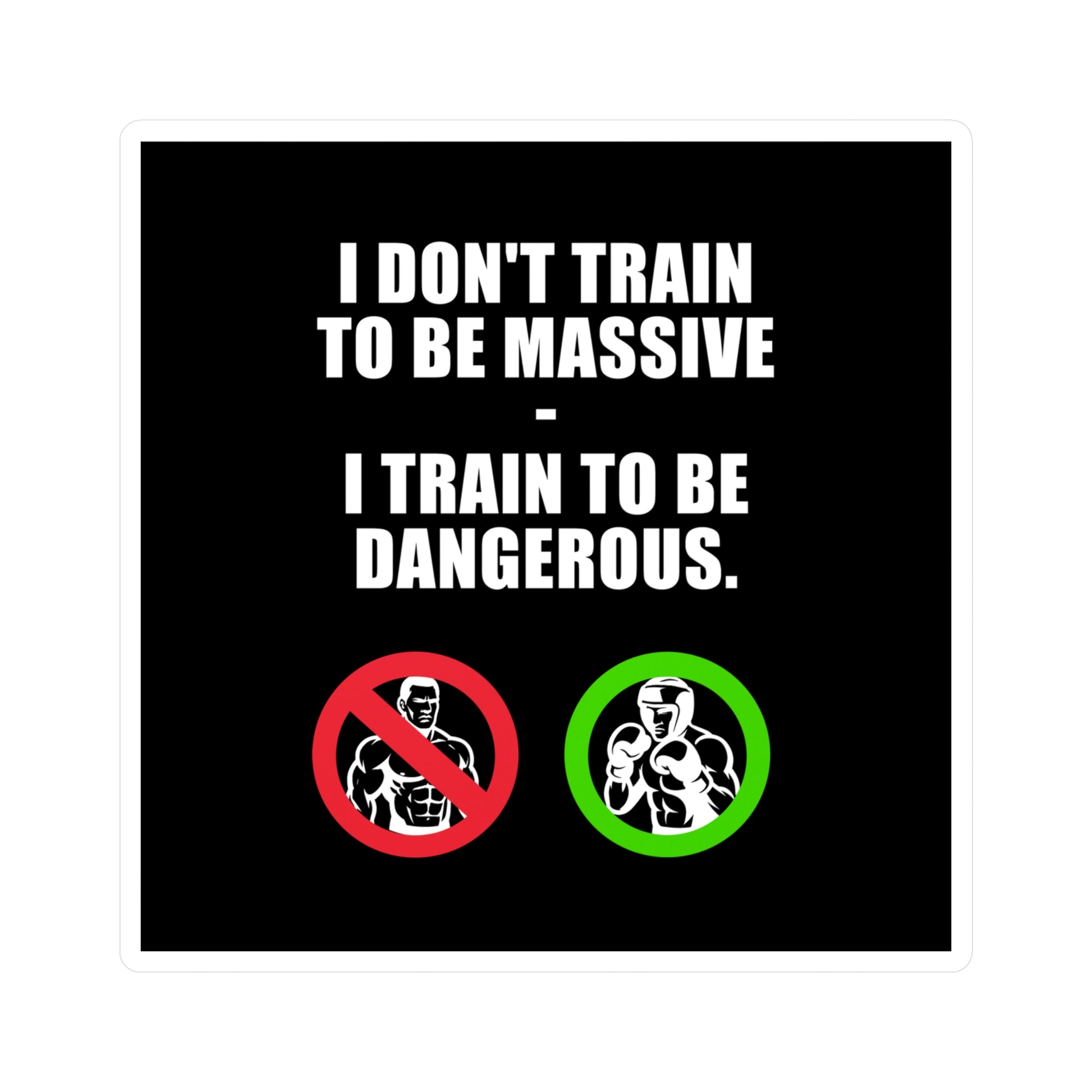 Chose your size : from 7cm x 7cm to 22cm x 22cm ! I don’t train to be massive — I train to be dangerous. — With a crossed-out bodybuilder and a fighter in green. This shirt is for those who train with purpose, not ego. For those who know that power isn’t measured in size, but in power. Sharp, raw, unapologetic — the Dangerous sticker is more than a style.