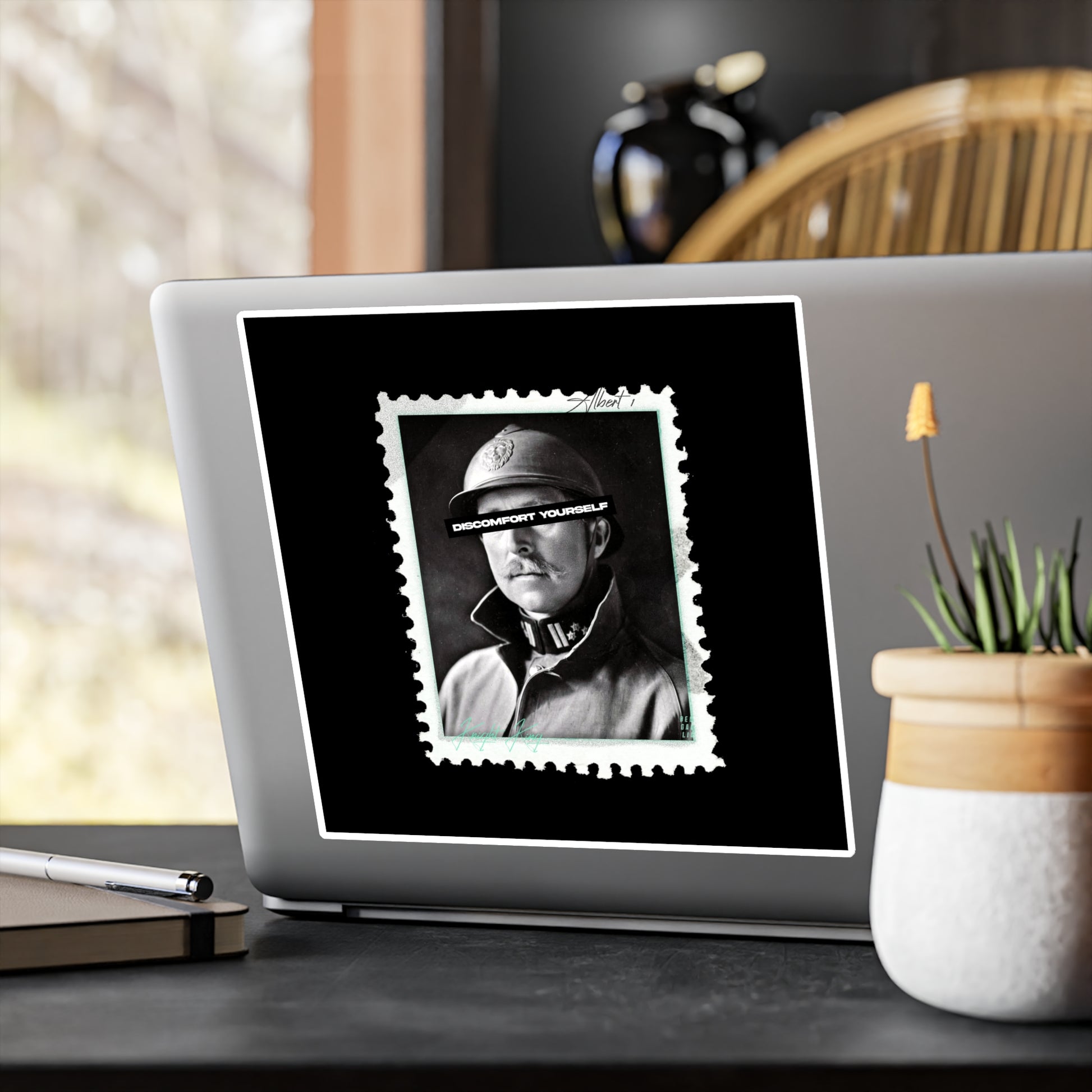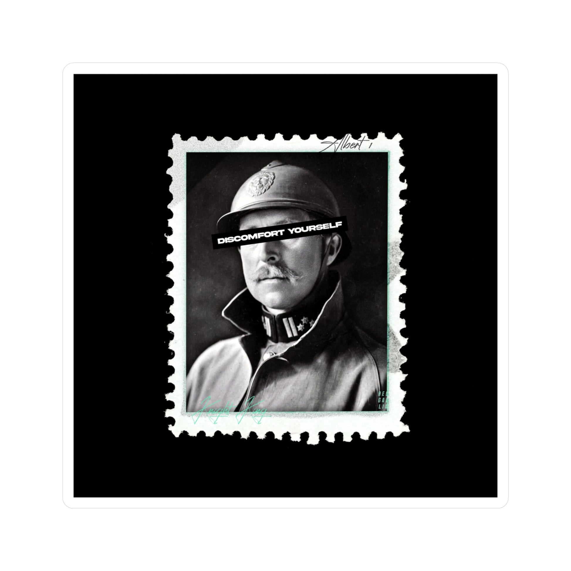 Chose your size : from 7cm x 7cm to 22cm x 22cm ! Inspired by Albert I, the "Knight King", sticker embodies resilience, courage and the will to push beyond limits. "Discomfort Yourself" isn’t just a slogan—it’s a mindset. Albert I led by example, facing hardship with determination. This big sticker don't fear rain or heat, they're suitable for indoor and outdoor use. Made from flexible white vinyl, they have a silky feel and matte finish. Vinyl stickers are stickier, more durable with a white outline.