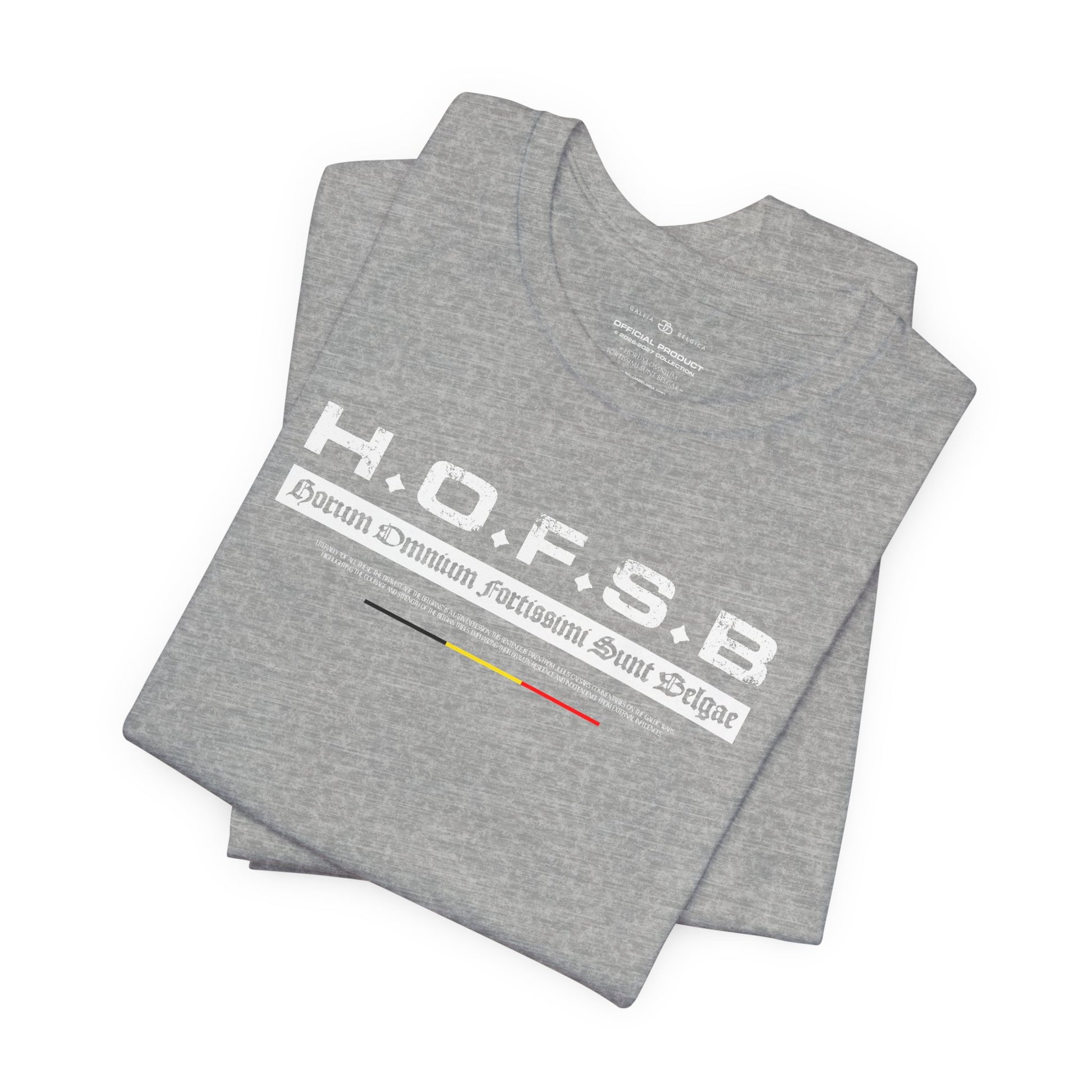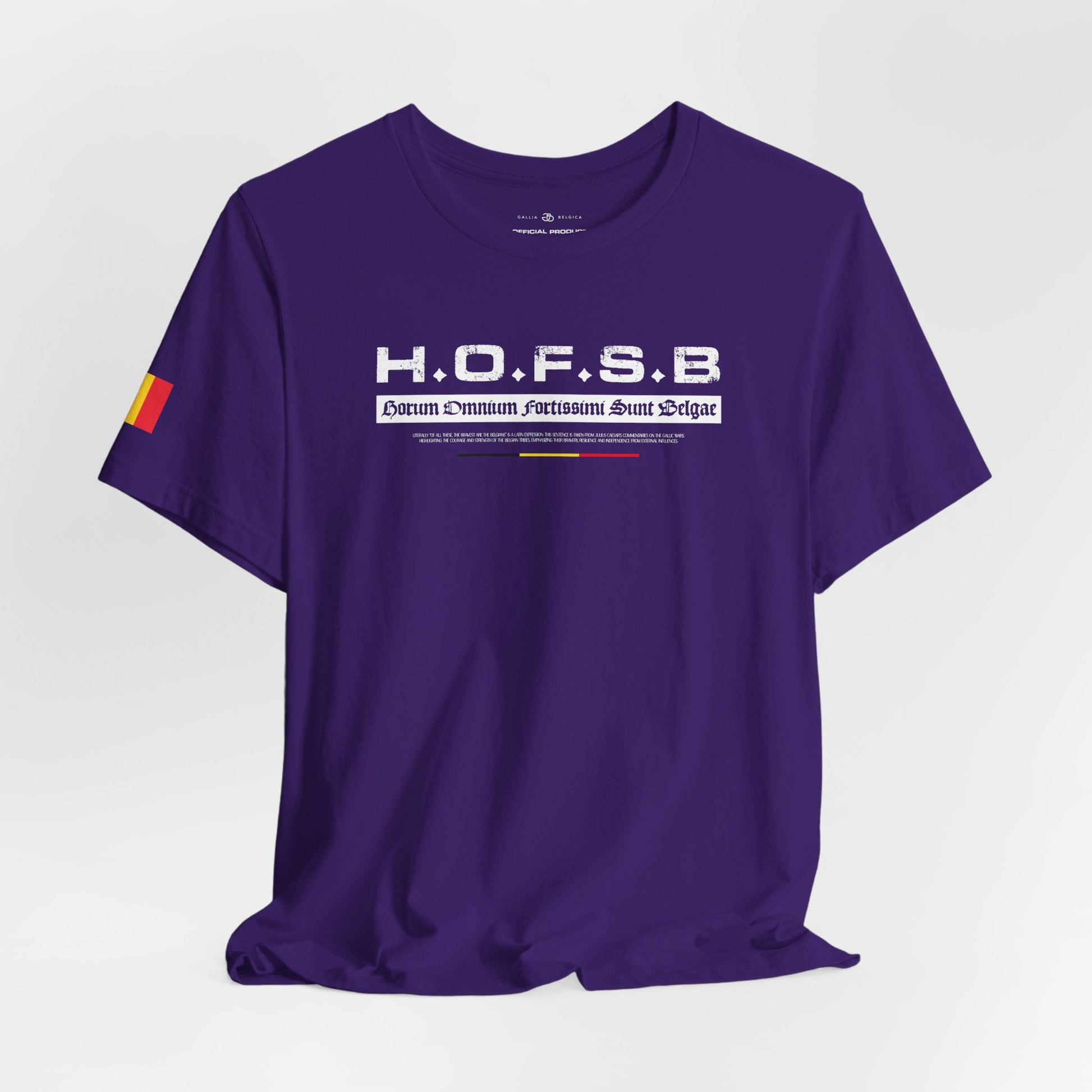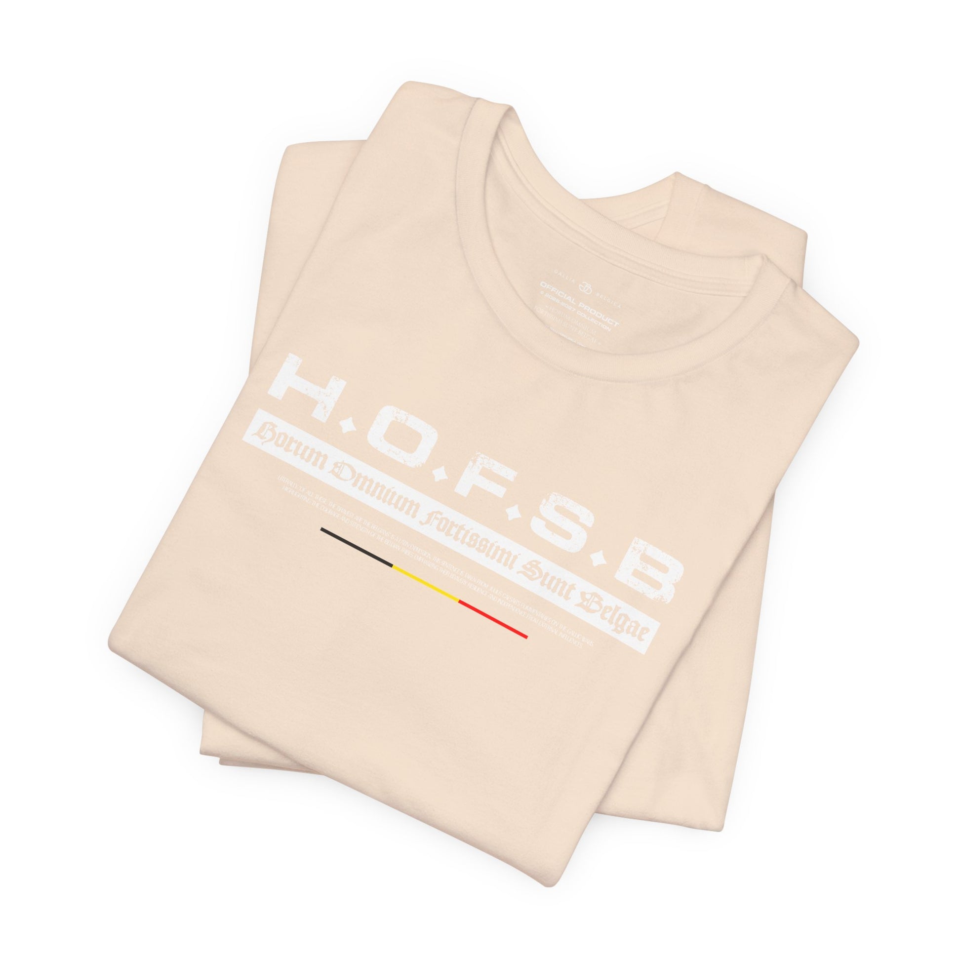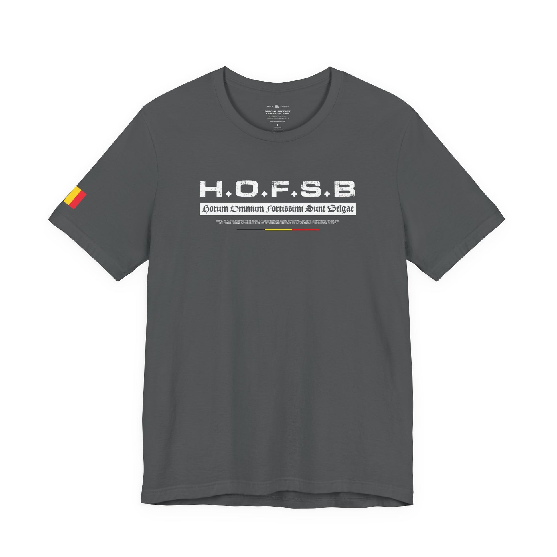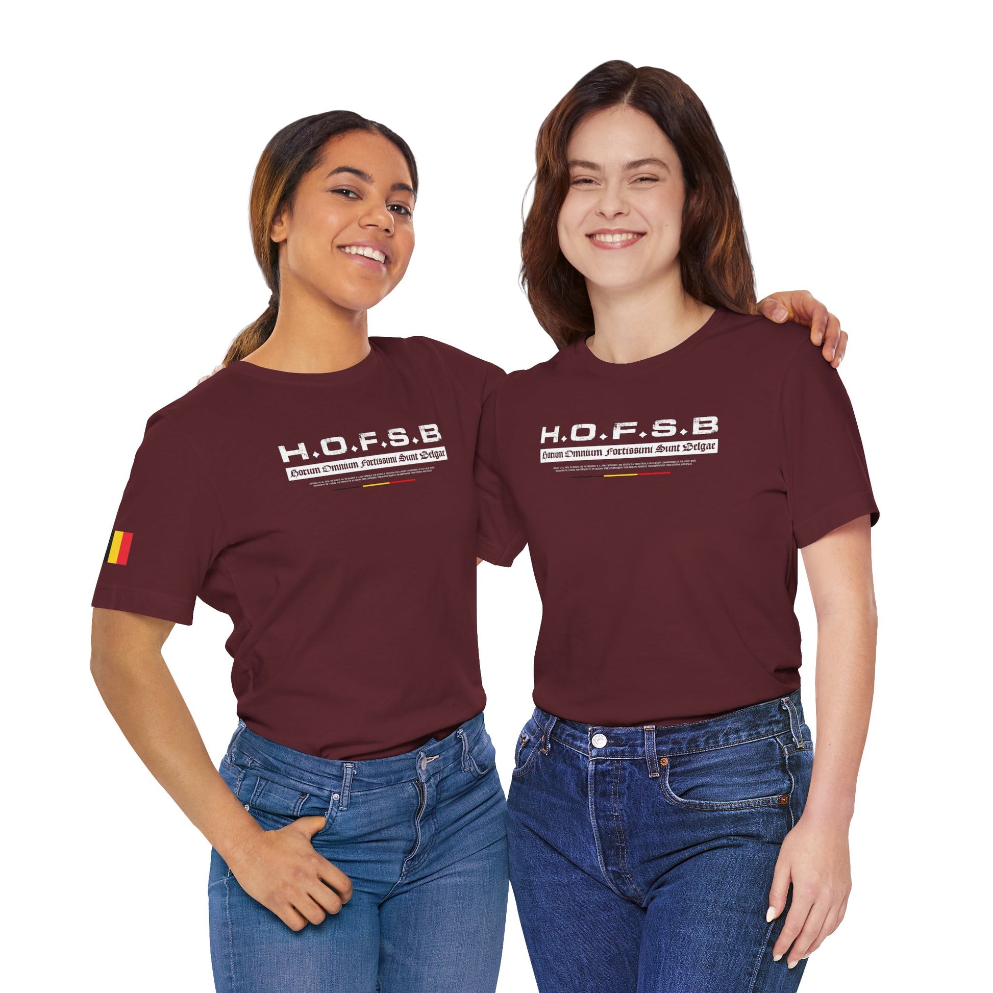 The H.O.F.S.B T-shirt remember the bravery of the Belgae tribes. "Horum omnium fortissimi sunt Belgae" is a famous Latin phrase from Julius Caesar's, meaning: "Of all these, the Belgians are the bravest." Made from soft, high-quality cotton, it’s both comfortable and chic, ensuring you stand out with a touch of wit and cultural flair. Their battle spirit burned like an unquenchable flame, driven by a fierce love for freedom and an unbreakable bond to their land. They stood as a wall of defiance against the mighty Roman legions, fearless even in the face of overwhelming odds. The Belgae were not just warriors—they were symbols of defiance, proof that the human spirit, fueled by pride, honor, and unity, can challenge even the greatest empires.