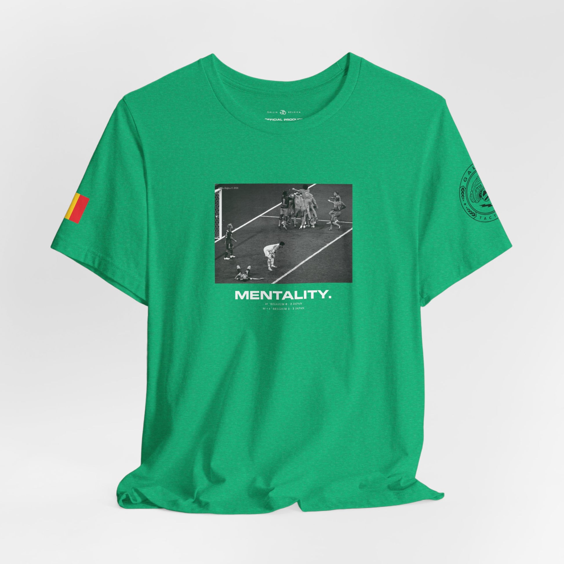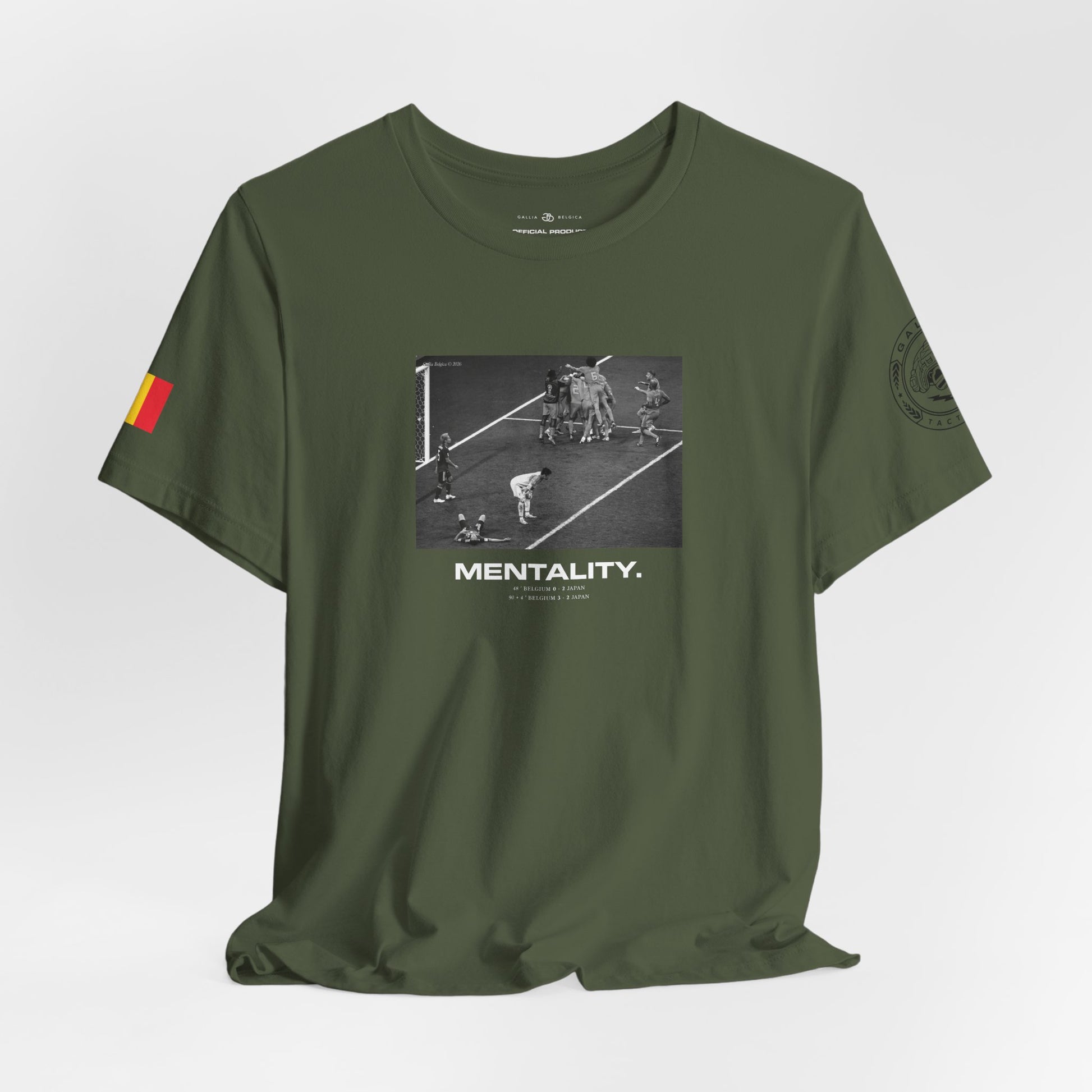 Inspired by the 2018 World Cup, this t-shirt is a tribute to the Belgian Red Devils and what they did for Belgium. More than a tournament, it was another kind of battle — fought with discipline, unity and an unbreakable mindset. Finishing 3rd place, the best result in Belgian history, it was all about winning-mentality. This limited-edition design embodies national pride and the mentality of winners. To be like them is to fear nothing, to control the game and to dominate through focus and determination. One mentality : Break the ennemies down.