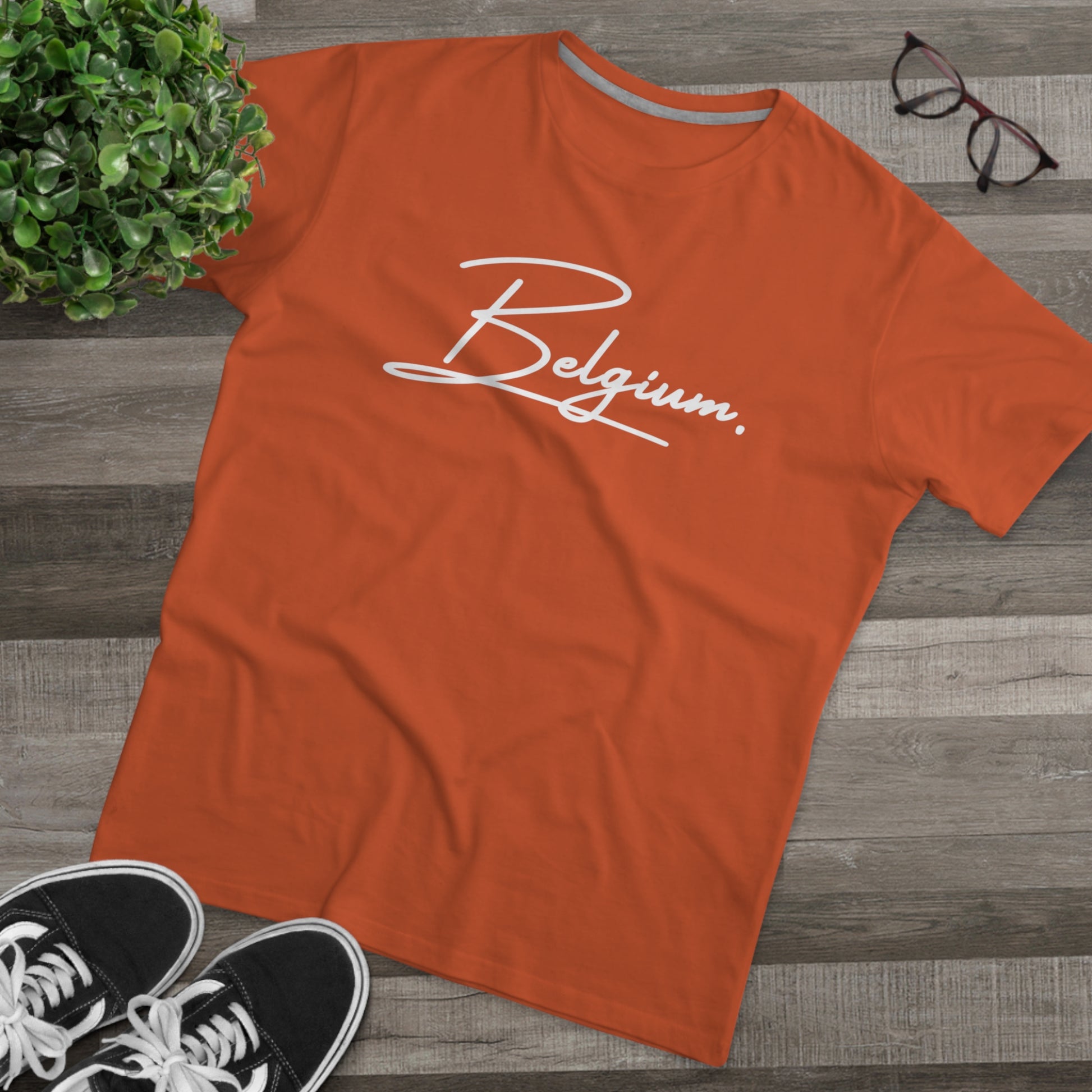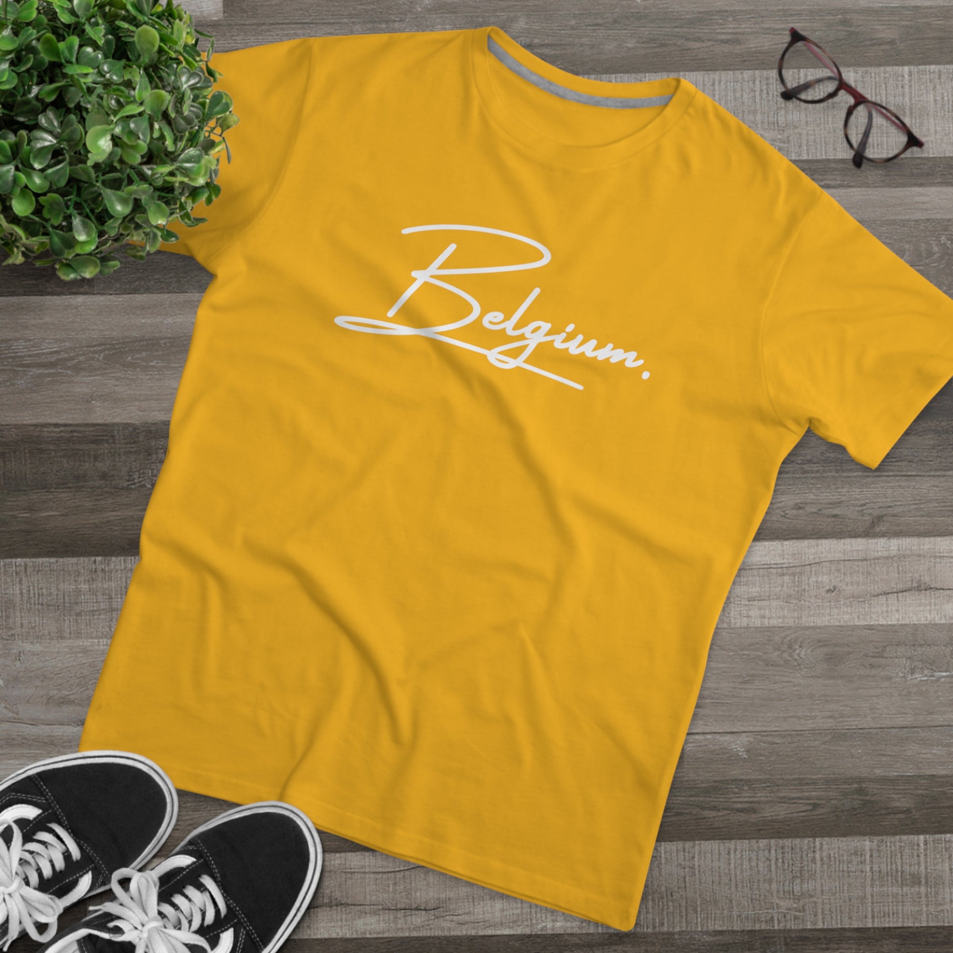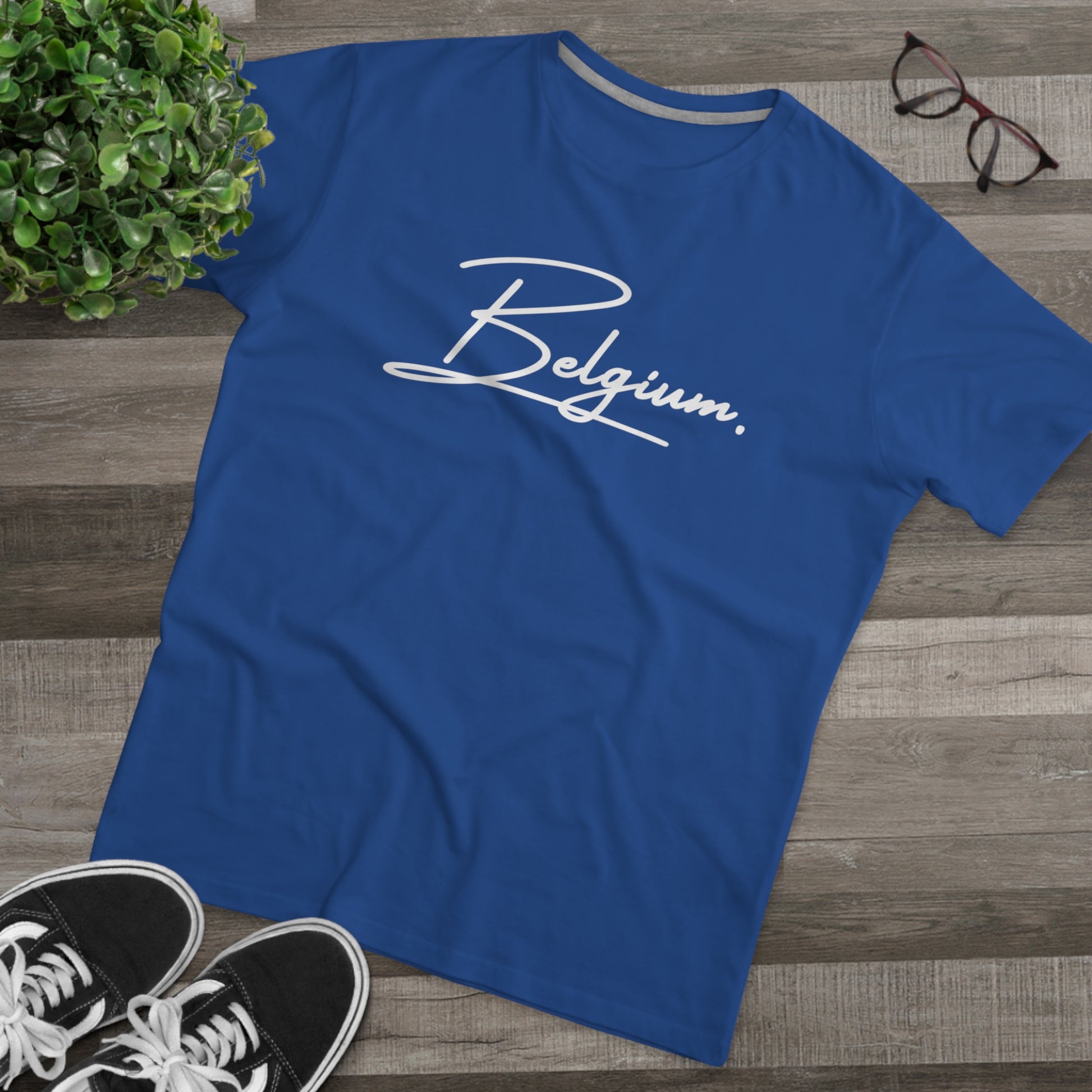 The Belgium t-shirt features a clean, elegant signature across the chest - simple yet powerful. Designed for those who appreciate style with meaning, this tee blends heritage and modern aesthetics effortlessly. Minimalist, Bold and Timeless. Represent Belgium with confidence. It features a thin elasticated rib collar, side seams and double-needle stitching on sleeves and hem. Be proud to be Belgian and be part of the Mouvement.